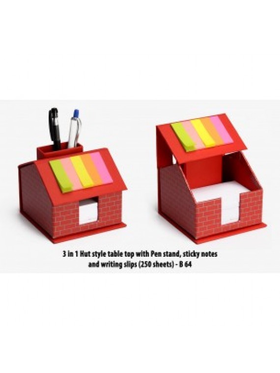 3 in 1 Hut style table top with Pen stand, sticky notes and writing slips (250 sheets)